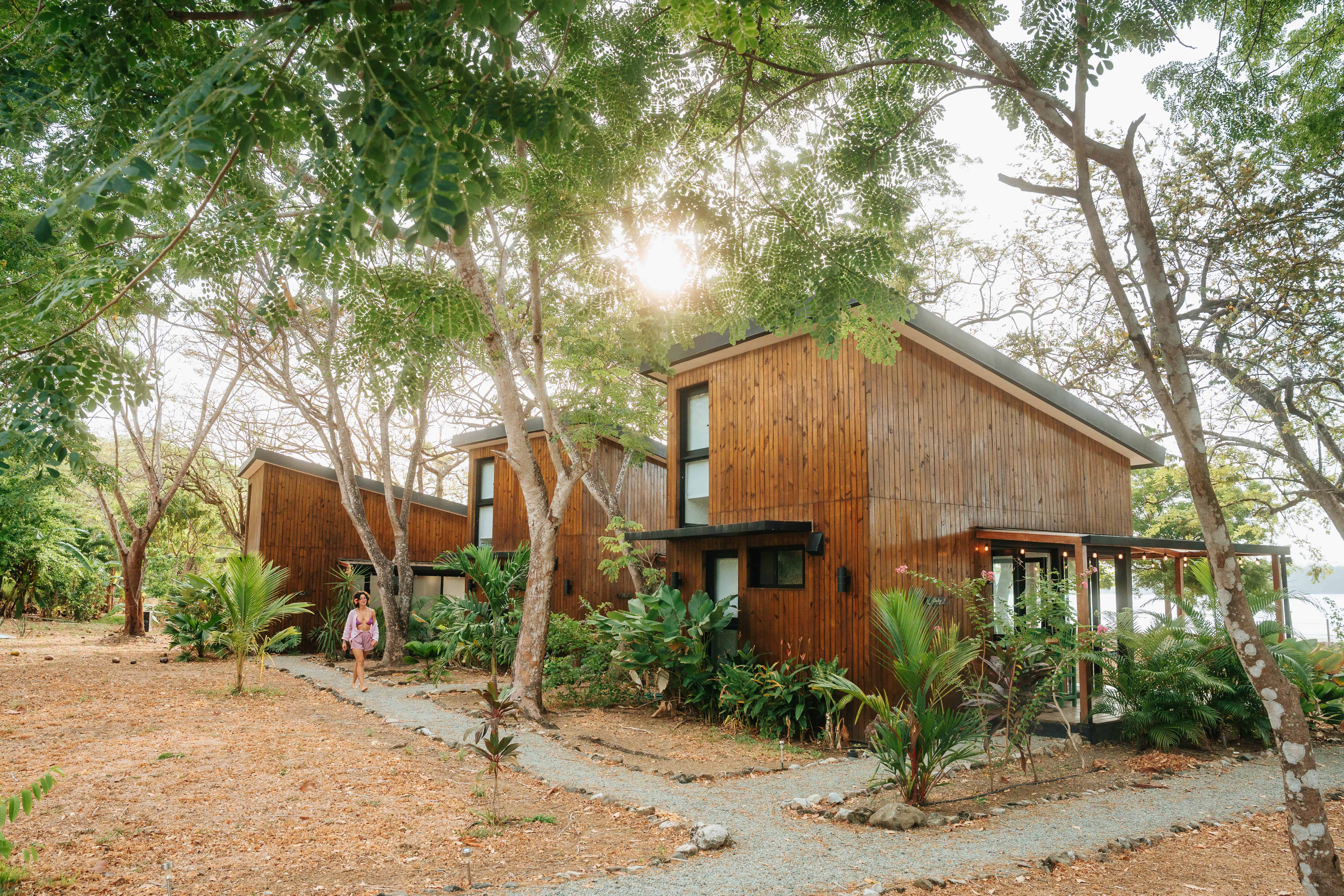 The retreat comprises three high-style tiny houses, each a modern tropical sanctuary designed for hospitality. Embodying minimalism and sustainable living, each tiny home was placed organically between the trees—no cutting, only careful siting that allows the structures to disappear within the landscape. Clean lines and contemporary forms open entirely to the beachfront—welcoming ocean breezes, blurring indoor and outdoor spaces.