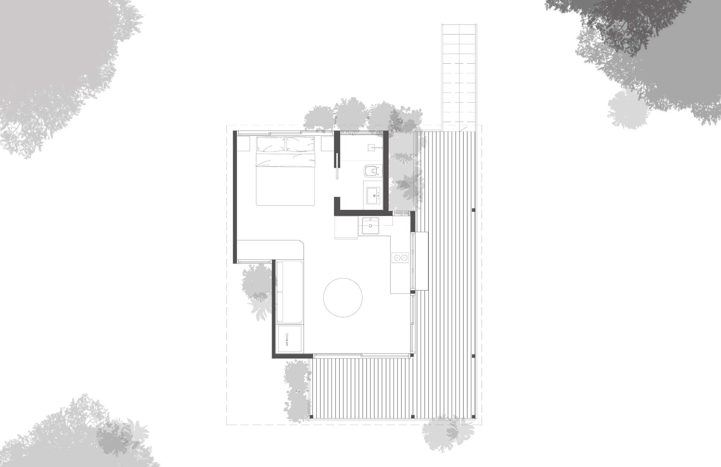 The Tiny Studio offers a smart and fluid single-level design with thoughtfully integrated indoor and outdoor spaces. This tiny home is perfect for guesthouses, rental units, or eco-tourism developments seeking scalable, high-quality architecture.